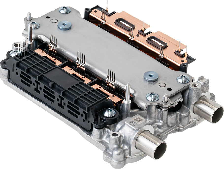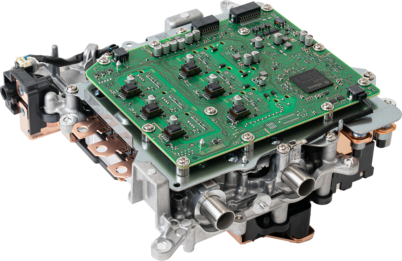 The inverter, a core component of BEV*1 and PHEV*2, plays a critical role in converting DC power from the battery into AC power to drive the motor. To meet demands for extended driving range, enhanced performance, and flexible installation to preserve cabin space, inverters are required to be compact while minimizing power loss and heat generation and supporting high current output.