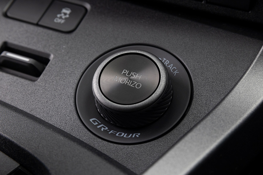 An exclusive 4WD control mode was developed together with Morizo, in which a “MORIZO” mode replaces the “GRAVEL” mode of the base vehicle. The “MORIZO” mode sets front/rear initial torque and driving force distribution at 50:50.